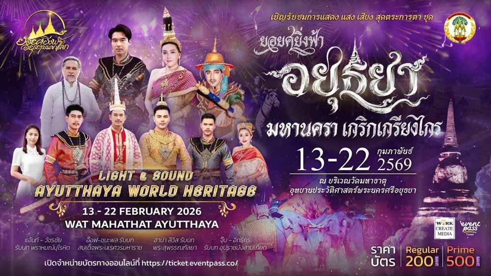 การแสดงแสง เสียง “ยอยศยิ่งฟ้า อยุธยามหานครา เกริกเกรียงไกร” ในงานยอยศยิ่งฟ้าอยุธยามรดกโลกประจำปี 2568 วันที่ 13 - 22 กุมภาพันธ์ 2569เป็นเนื้อหาของบทความหรือสินค้าโดยละเอียด